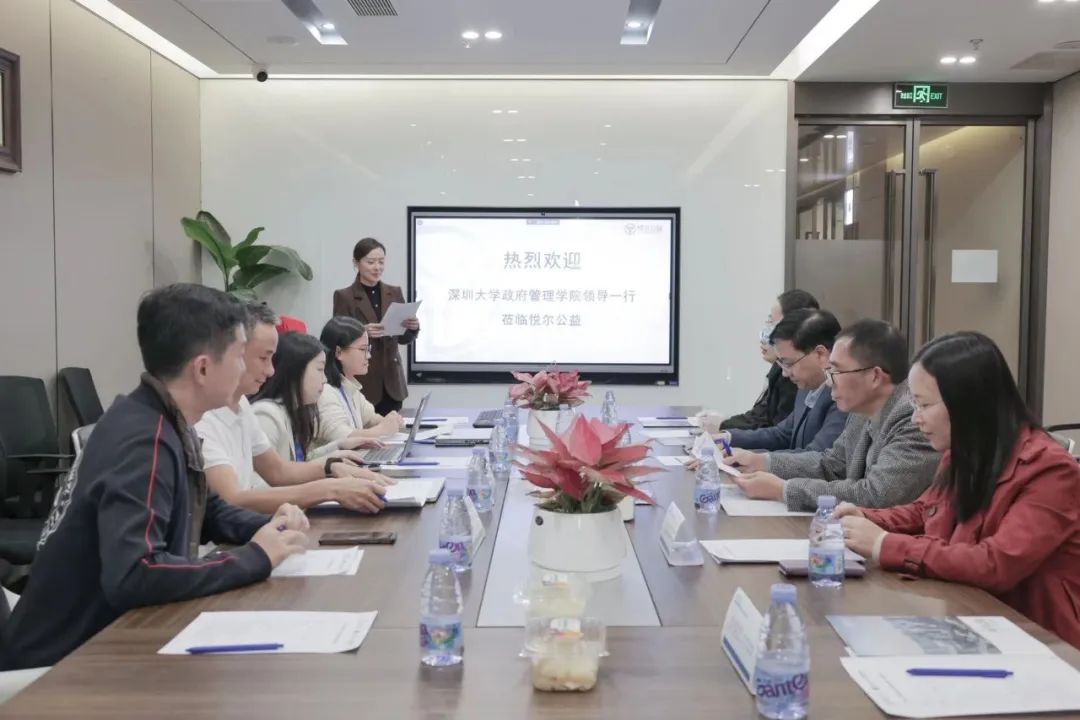 为推进深圳大学政府管理学院与广州悦尔公益基金会(以下简称“悦尔公益”)共建“社会工作硕士研究生 (MSW) 专业实践基地”,更好地推动我院社会工作专业教育理论与实践的相结合,2023年12月29日下午两点,深圳大学政府管理学院师生赴南山区悦尔公益深圳办事处就“共建专业实践基地”与悦尔公益展开了充分的交流和探讨,期待未来在公益慈善与社会工作的联结和融合、积极推动公益慈善事业共同体的发展建立更加深入的合作。