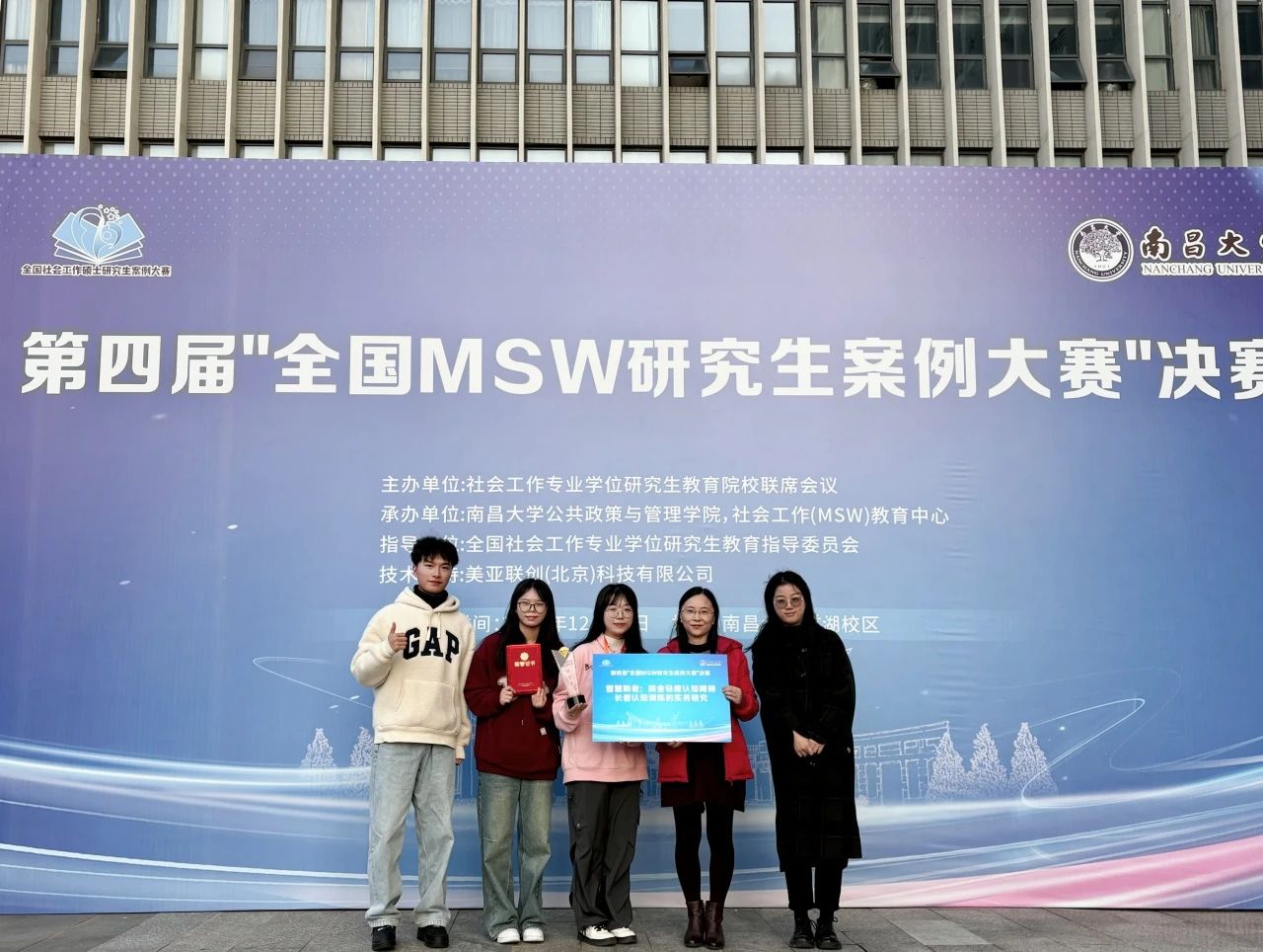 2024年12月14日,政府管理学院社会工作硕士(MSW)师生在“第四届全国MSW研究生案例大赛”中斩获特等奖。“第四届全国MSW案例大赛”决赛由全国社会工作专业学位研究生教育指导委员会指导,社会工作专业学位研究生教育院校联席会议主办,南昌大学公共政策与管理学院、MSW教育中心承办。