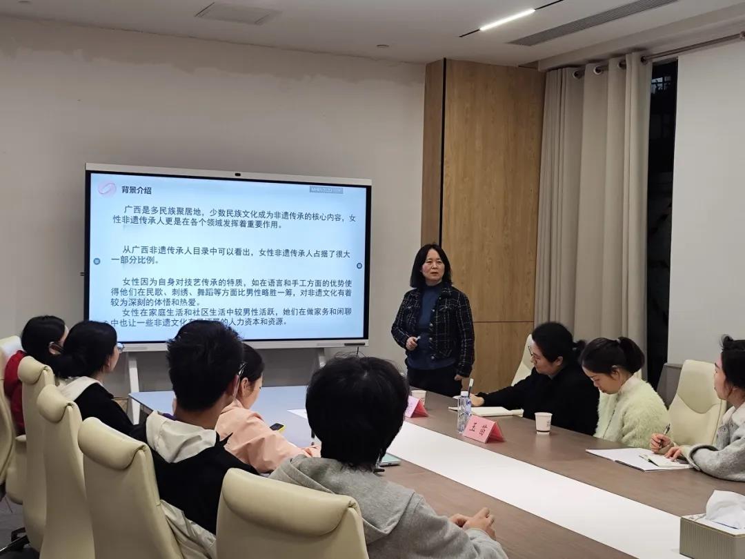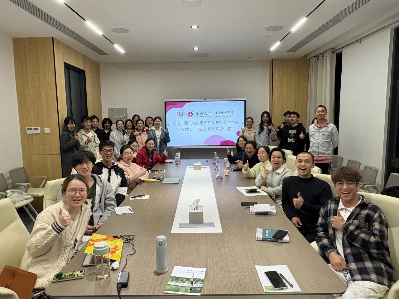 2024年12月24日至12月25日,广西民族大学民族学与社会学学院艾晶教授、社会学系党支部书记黎莹副教授和社会工作专业硕士学位授权点负责人玉苗副教授到访深圳大学政府管理学院。广西民族大学民族学与社会学学院艾晶教授为深圳大学社会学系师生带来了一场主题为“优势视角下广西女性非遗传承人发展路径研究”的精彩讲座,讲座探讨了非遗传承人以及非遗文化传承的意义与重要性,以及如何引导女性非遗传承人发挥其优势,融合自身能力提升和周围环境资源。