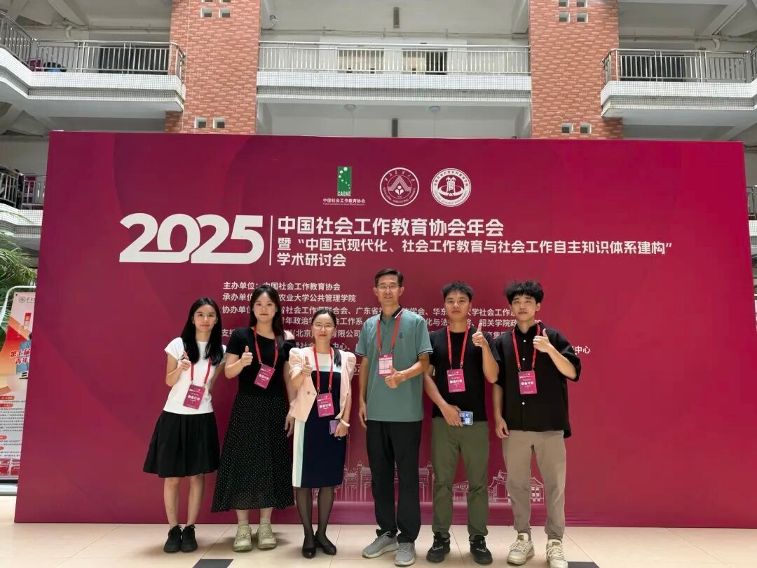 2025年8月22日至24日,由中国社会工作教育协会主办,华南农业大学公共管理学院承办的 2025年中国社会工作教育协会年会暨“中国式现代化、社会工作教育与社会工作自主知识体系建构“学术研讨会在广东召开,来自全国各地政府部门、高校、社会工作组织等单位的教师、学生、社工代表等参加了会议。深圳大学政府管理学院徐道稳教授、社会工作硕士教育中心主任唐咏教授、硕士研究生陈卓敏、周怡彬、刘滨源和林欣然受邀出席,并在多个分论坛上主持、发言和评议。
