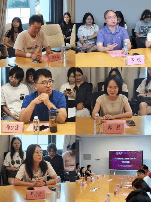 随后,各位研究生导师依次围绕自身核心研究领域,科研成果以及培养理念展开详细介绍,同时表达学术期望与未来培养方向。会议中,导师们不断鼓励学生突破传统社工边界,培养创新思维。导师介绍结束进入师生互动环节,导师们针对新生提出的问题逐一解答,新生们结合自身本科背景与实践经历,当场与心仪导师初步沟通选择意向,互动氛围浓厚。
