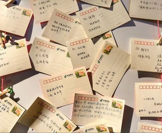 ①选择在明信片上留下一个自己想问的问题,等待他人的回应