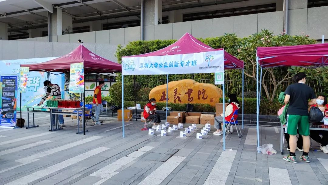义卖区——这里不仅有同学们闲置物品的收集区,让旧物品在传递中焕发新价值;也有公益项目资助产品的义卖,收益所得将全部交由深圳市中国慈善会发展中心投入公益事业当中!