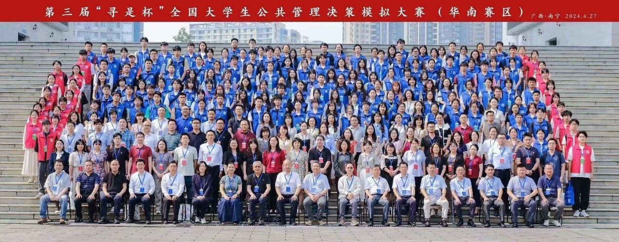 2024年4月27日至28日,由中国科学学与科技政策研究会主办,中国科学学与科技政策研究会公共管理专业委员会、广西高校公共管理类教学指导委员会协办,广西大学公共管理学院承办,上海哲寻信息科技有限公司提供技术支持的第三届“寻是杯”全国大学生公共管理决策模拟大赛(华南赛区)在广西大学成功举办,来自华南地区49所院校的50支队伍参加此次大赛。