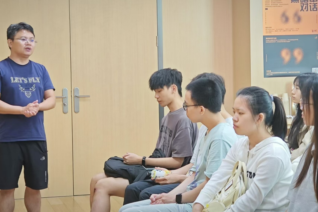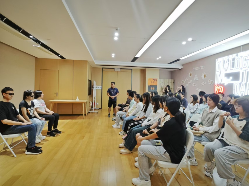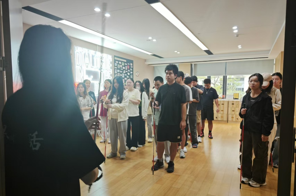 活动伊始,“黑暗中对话”深圳馆的接待人员为同学们介绍了机构的背景与使命。“黑暗中对话”由德国机构“对话”于1988年创立,致力于消除社会对残障人士的偏见与歧视,同时为残障人士提供多元化的就业机会。体验馆以“黑暗”为媒介,鼓励人们重新感知世界,从而提升对包容与平等的理解。随后,同学们被分为四组,在视障工作人员的带领下,开始了一场全黑环境中的探索之旅。
