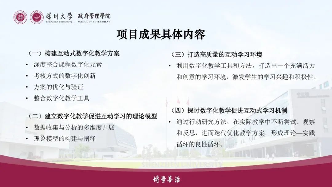 1、整合国内外互动学习的文献及跨领域专家的意见,优化了现有的数字化课堂,并采用行动研究方法实现理论-实践循环,最终为课堂提供切实有效的教学方案;