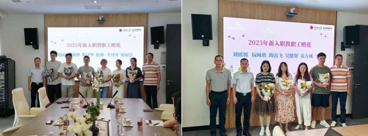 接着何燕辉书记、陈文院长为曾婧婧等12位新入职教职工赠送鲜花。随后,各位老师畅谈教育理想,分享个人经历与活动感悟,提出自己关心关切的问题并得到班子积极热烈反馈。与会者共同探讨了如何更好地传承和弘扬教育家精神、在新时代为院系建设添砖加瓦。