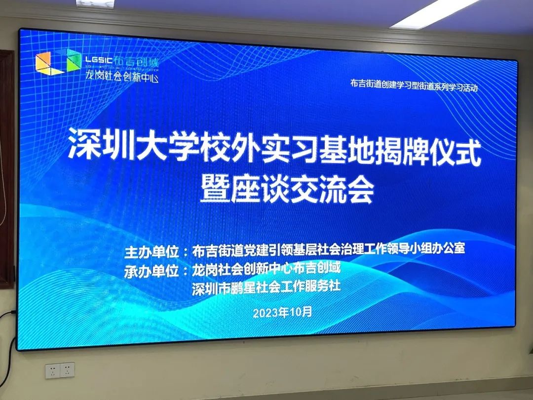 为落实社会工作专业人才培养目标,促进学生高质量、多渠道开展实习就业,2023年10月,深圳大学政府管理学院校外实习基地在布吉街道龙岗社会创新中心布吉创域揭牌成立。