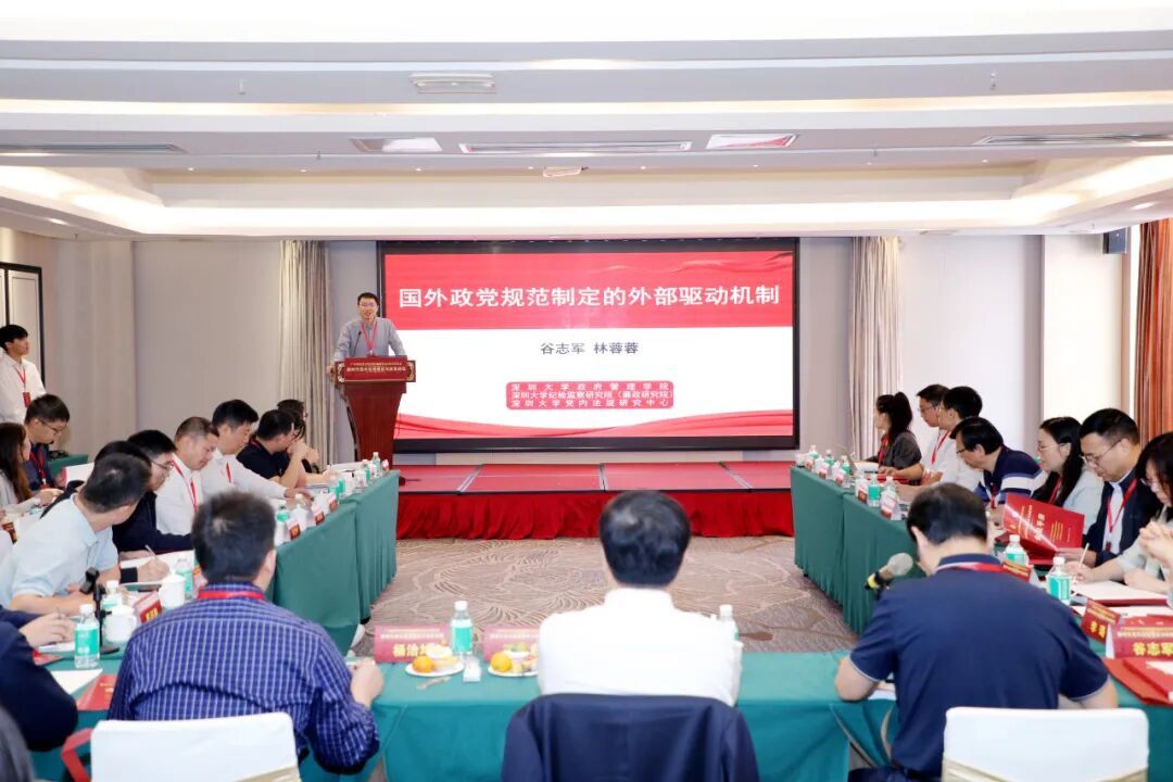广东省法学会党内法规研究会副会长、深圳大学政府管理学院副院长、纪检监察研究院(廉政研究院)副院长、党内法规研究中心主任谷志军教授受邀出席,并作题为“国外政党规范制定的外部驱动机制”主旨报告。谷教授从外部驱动视角出发,提出“制度性-社会性-竞争性”压力的三维分析框架,结合多国政党规范的实践案例探讨了国外政党规范制定的三重外部驱动机制。