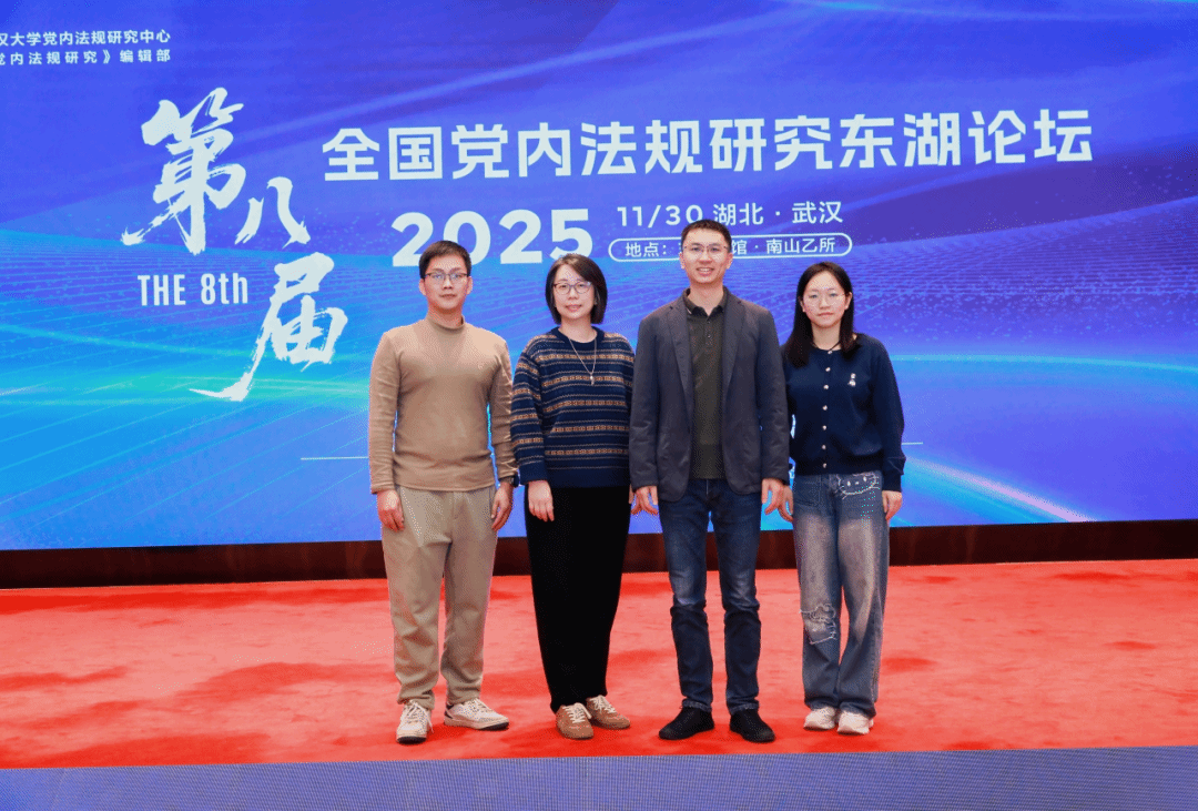2025年11月30日,由武汉大学党内法规研究中心、《党内法规研究》编辑部主办的第八届全国党内法规研究东湖论坛在武汉举行。湖北省委常委、省委秘书长彭勇,武汉大学党委书记朱孔军出席开幕式并致辞。本届论坛以“学习贯彻党的二十届四中全会精神,奋力谱写新征程依规治党新篇章”为主题,来自北京大学、中共中央党校(国家行政学院)、中国社会科学院等高校和科研机构,全国各省区市党委办公厅和法规工作部门的200余名专家进行了深入研讨。