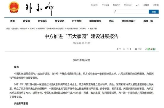 2023年9月,大湾区—东盟经济合作(前海)论坛及其成果写入中国外交部官方重要文件《中方推进“五大家园”建设进展报告》。