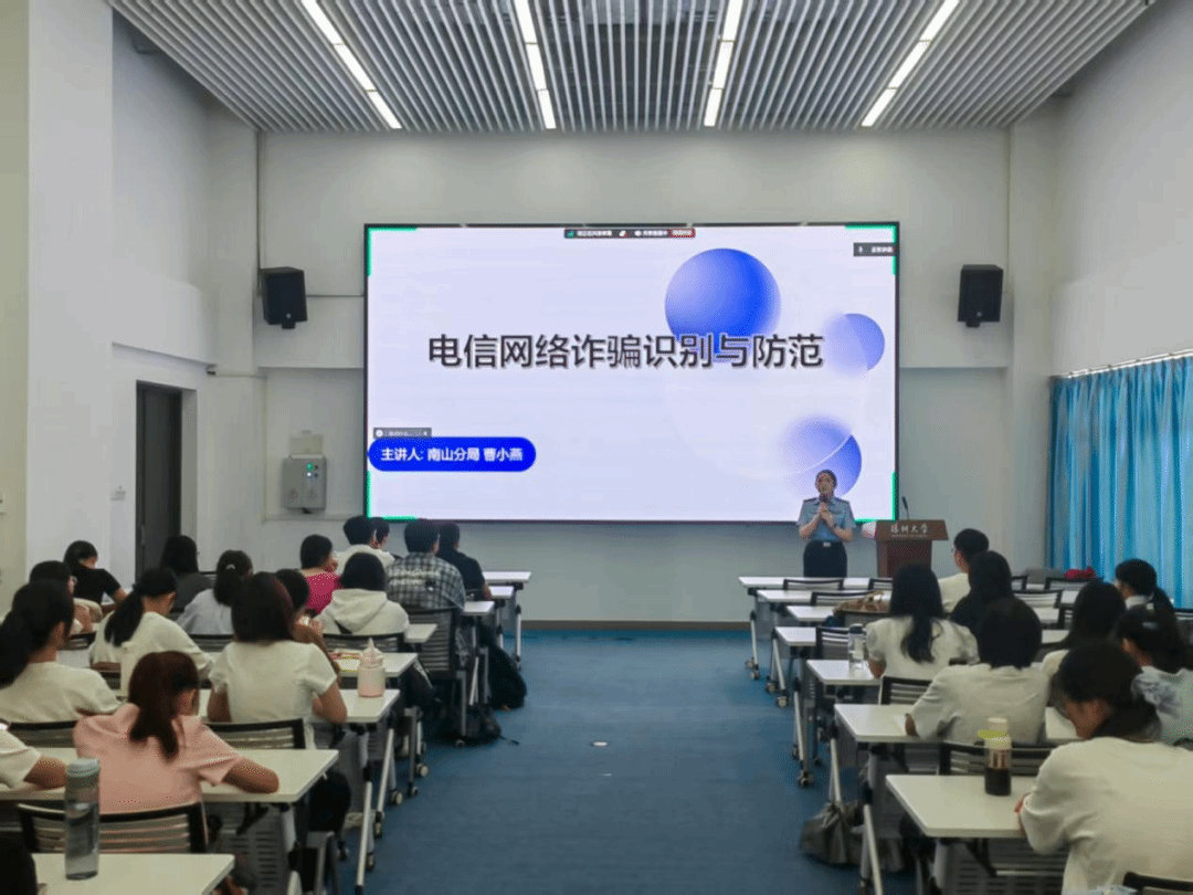 为提高增强同学们的防诈骗意识与应对能力,学院特邀南山公安分局反诈中心曹小燕警官开展了一场防诈骗专题宣讲。曹警官从诈骗常见流程入手,系统梳理了大学生群体中高发的电信网络诈骗类型,并结合真实案例进行剖析,使大家更直观地认识诈骗手法。在讲解的最后部分,曹警官还详细分享了实用防范技巧,助力同学们提升识别和预防诈骗的能力。