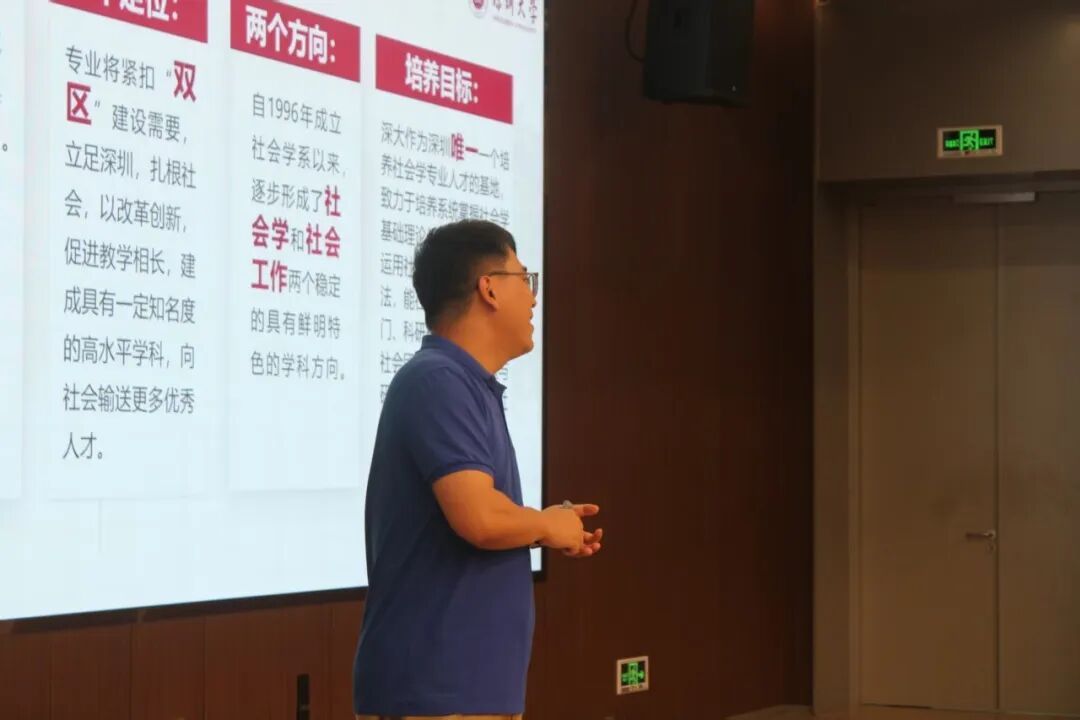在见面会上,徐老师首先介绍了社会学专业的基本情况,包括学科的历史沿革、研究领域和学术价值。接着,他详细阐述了社会学系的师资力量和科研方向,展示了系内教师的学术成就和研究领域,以及他们在国内外学术界的影响力。在课程体系介绍环节,徐老师强调了社会学系课程的多样性和实践性,说明了我们的课程设置如何培养学生的批判性思维和社会分析能力。此外,他还特别强调了社会学系的培养特色,即注重实践导向,鼓励学生走进田野,走进社会,广泛地开展调查研究。最后,徐老师还分享了社会学系毕业生的升学和就业情况,展示了我院社会学专业的广阔前景和多元化发展路径。
